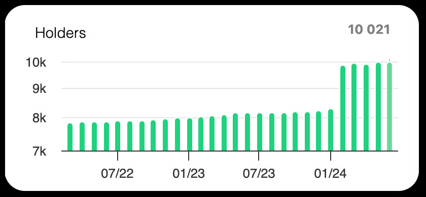 The number of token holders slightly increased to 10,053 by the end of June, compared to 10,003 in May and 8,282 in January.