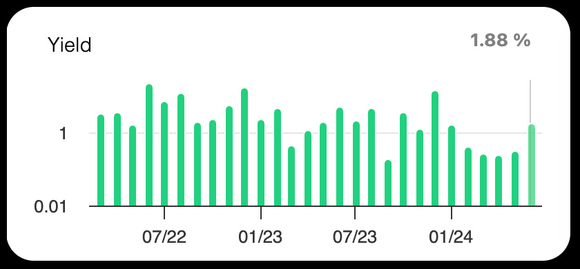 The yield for stakers in June was 1.87%, a 311% increase from the average of 0.6% since January 2024.