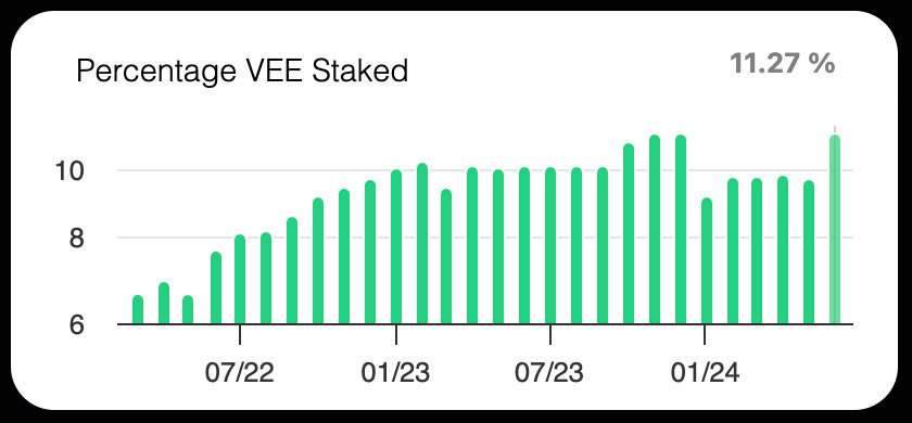Percentage of VEE Staked: All-time high of 11.27%.