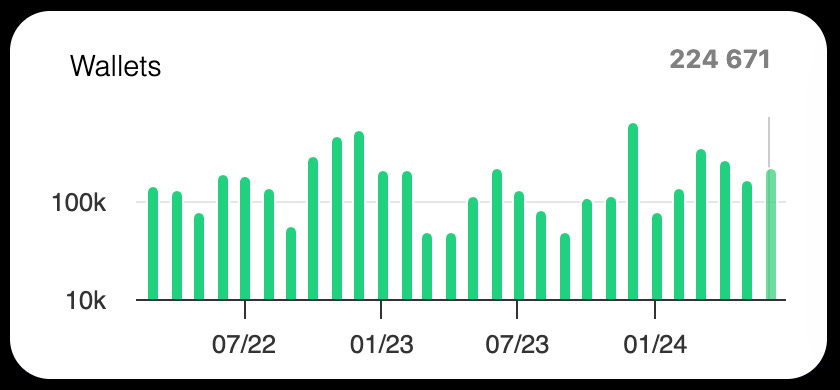 In June, 224,000 wallets were created, a 10% increase compared to the average of 204,000 since January 2024.
