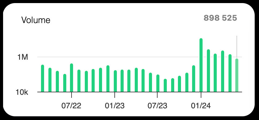 Trading volume for $VEE was $898,525 in June, a 43% decrease from May and 79% below the average since January 2024. The majority of this volume was driven by the VISA announcement, and a decline six months later is expected. Volume is anticipated to rise again when the partnership activates, as discussed later in this article.