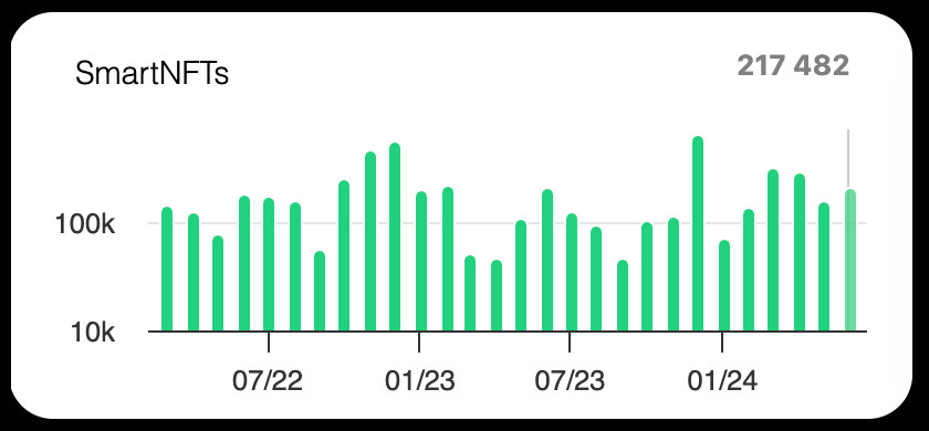June saw the creation of 217,000 SmartNFTs, a 7.4% increase from the average of 201,000 since January 2024.