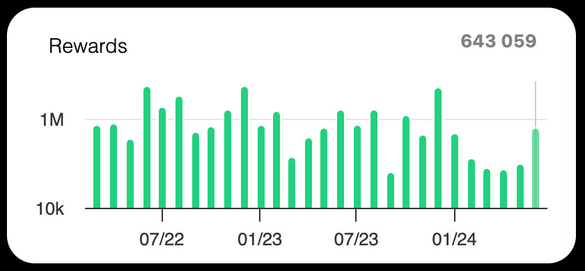 In June, 643,000 $VEE were rewarded to stakers, a 376% increase compared to the average of 171,000 since January 2024.
